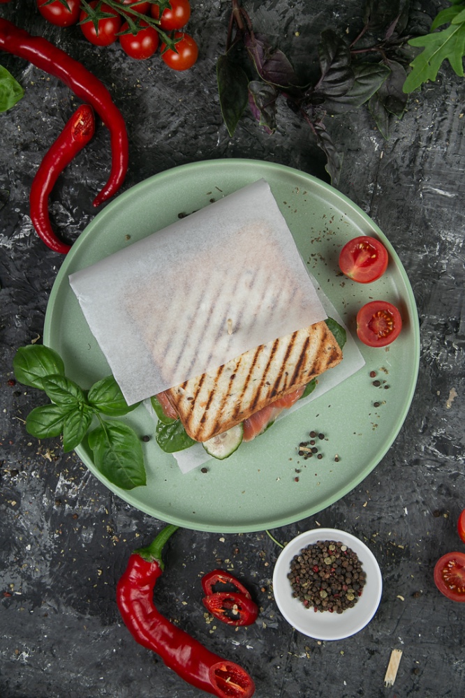 Начинка з лосося, авокадо, свіжих помідорів з огірками та листям салату, заправлена крем-сиром, любов'ю❤️, загорнута у смачний лаваш.